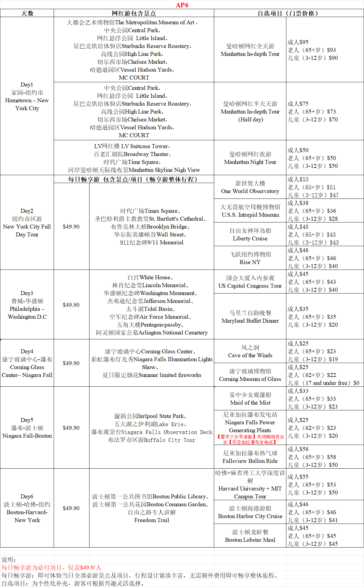 【*曼哈顿网红全天游】:卖价:大人/老人/小孩 95/93/90 美金/人